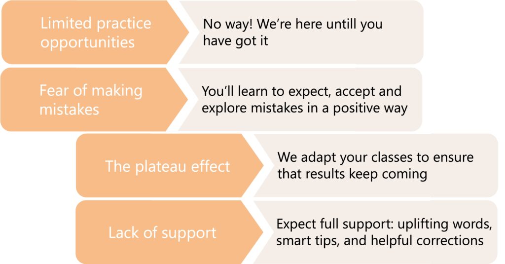 There are many reasons why people don’t reach the level they want to be at. Our way of working battles the 8 most common reasons for that.